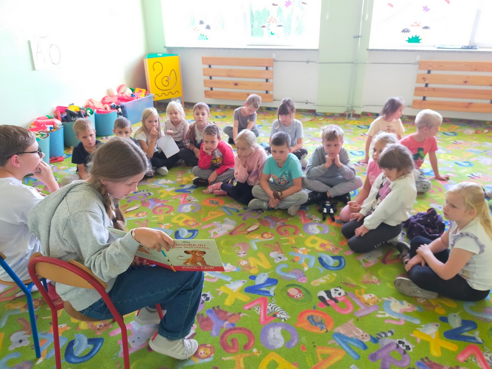 Z tej okazji uczniowie klas IV–VI wcielili się w rolę lektorów i przygotowali dla młodszych kolegów i koleżanek wyjątkowe spotkania z książką. Czytali oni dzieciom z Gminnego Przedszkola w Spiczynie, a także uczniom klas I–III i oddziałów przedszkolnych naszej szkoły.