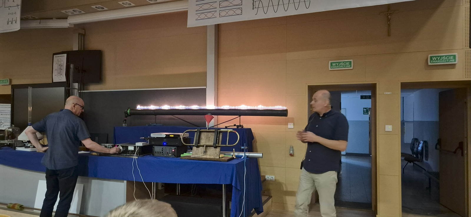 - Akustyka – dr hab. Tomasz Kwapiński, dr Andrzej Droździel oraz Piotr Mendel przybliżyli uczestnikom tajniki dźwięku, jego właściwości oraz zastosowanie w różnych dziedzinach życia, co spotkało się z entuzjastycznym odbiorem młodzieży.