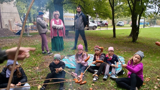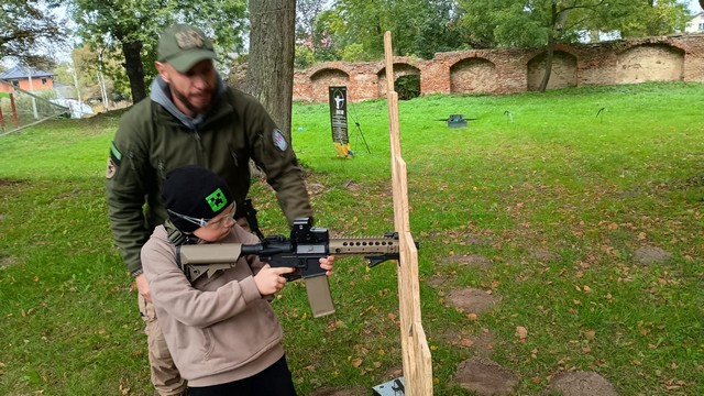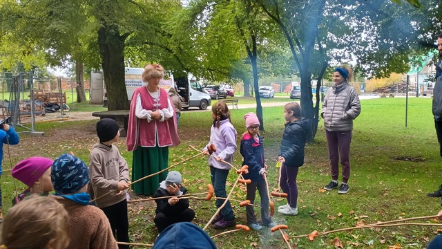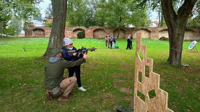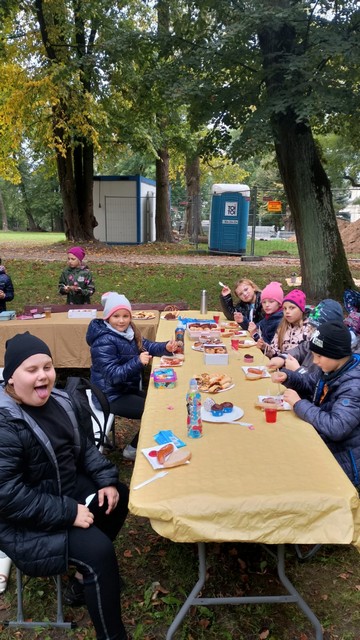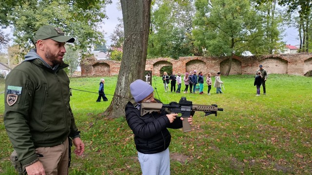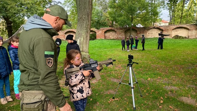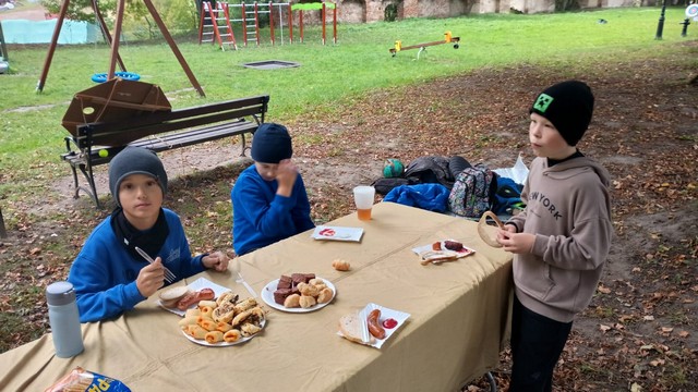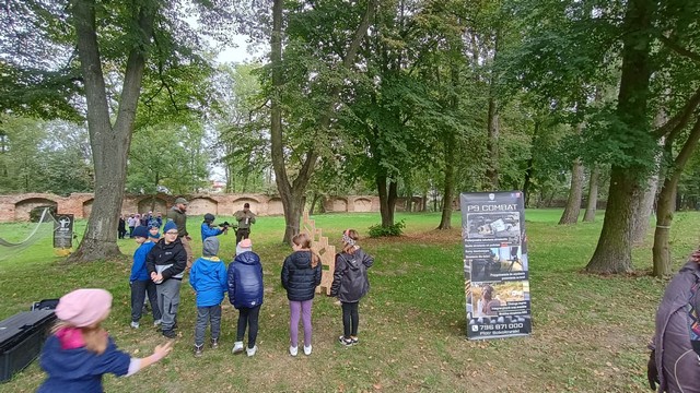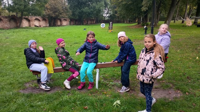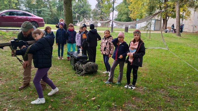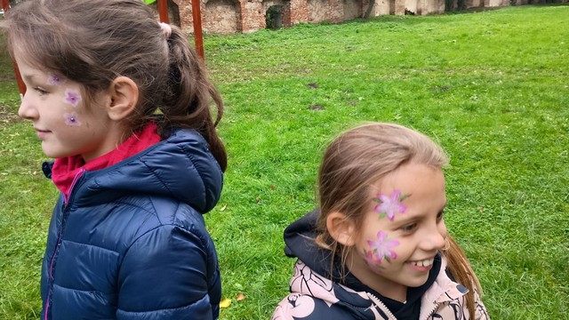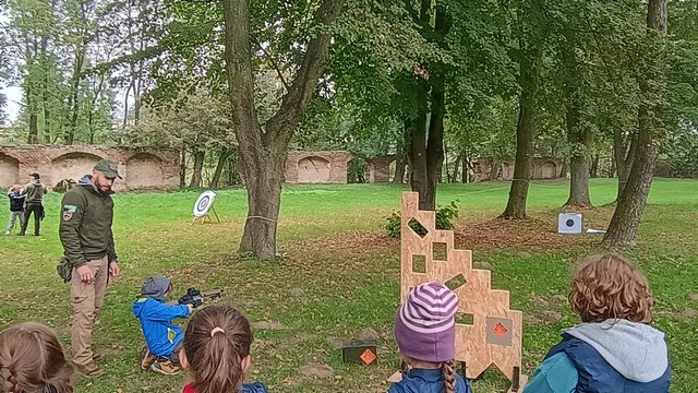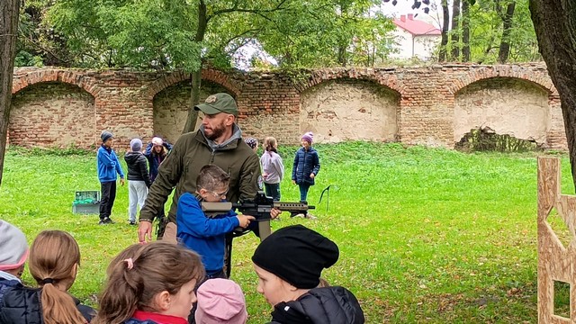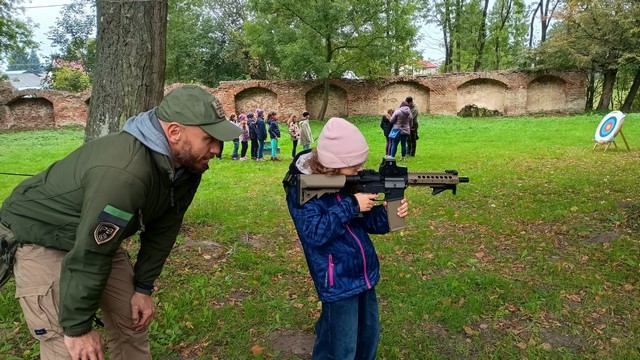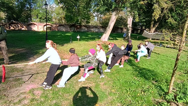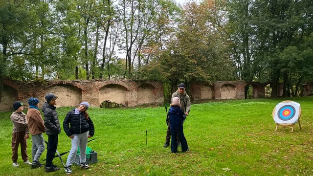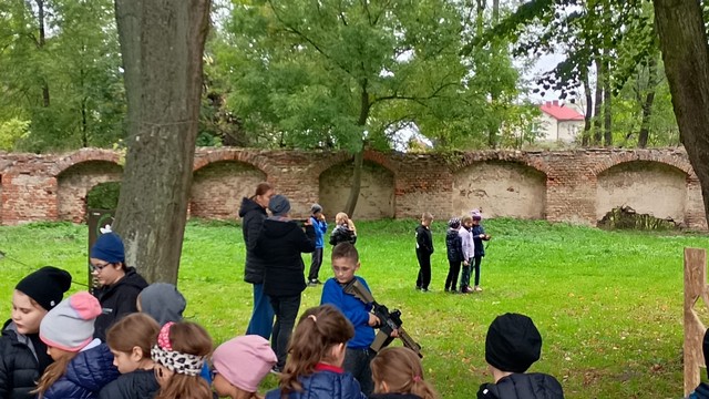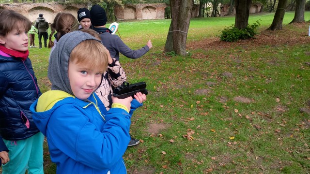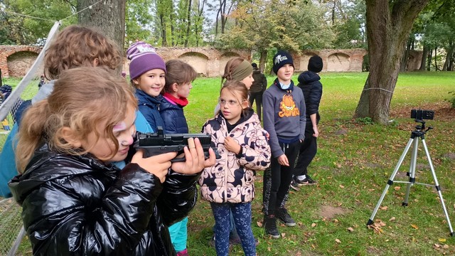Uczniowie mogli spróbować swoich sił z łukiem oraz poznać tajniki strzelenia z broni. Wymagało to skupienia i wielkiej precyzji. Po dawce adrenaliny można było odpocząć na placu zabaw albo rozegrać emocjonujący mecz piłki nożnej. Wśród licznych atrakcji znalazło się również malowanie twarzy, które cieszyło się dużym zainteresowaniem wśród uczniów, za co dziękujemy uczennicom klasy VII. Nie zabrakło także chwili zadumy i historii. Uczniowie zwiedzili zabytkową kaplicę oraz lochy zamku w Zawieprzycach. To była prawdziwa lekcja historii, która pozwoliła dzieciom przenieść się choć na chwilę w dawne czasy i lepiej zrozumieć, jak wyglądało życie w przeszłości.