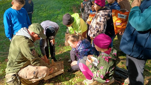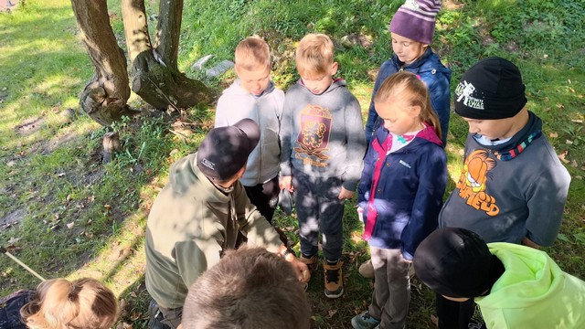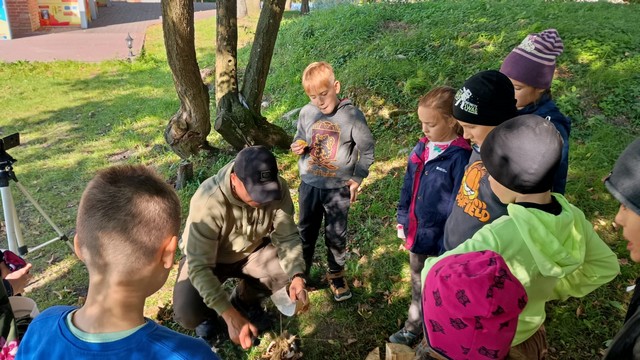 Dzieci dotarły nad ujście Bystrzycy do Wieprza, które – jak się okazało – jest lejkowate. Brzmiało to tajemniczo, niemal jak magiczne zaklęcie! Dowiedziały się też, że rzeka potrafi „meandrować”, co oznacza, że nie chodzi prosto jak po linijce, tylko robi sobie wesołe zakręty, zupełnie jak uczniowie na przerwie. Po takiej dawce przyrodniczych ciekawostek, wreszcie dotarli na miejsce – a tam czekały… prawdziwe atrakcje jak z filmu przygodowego!