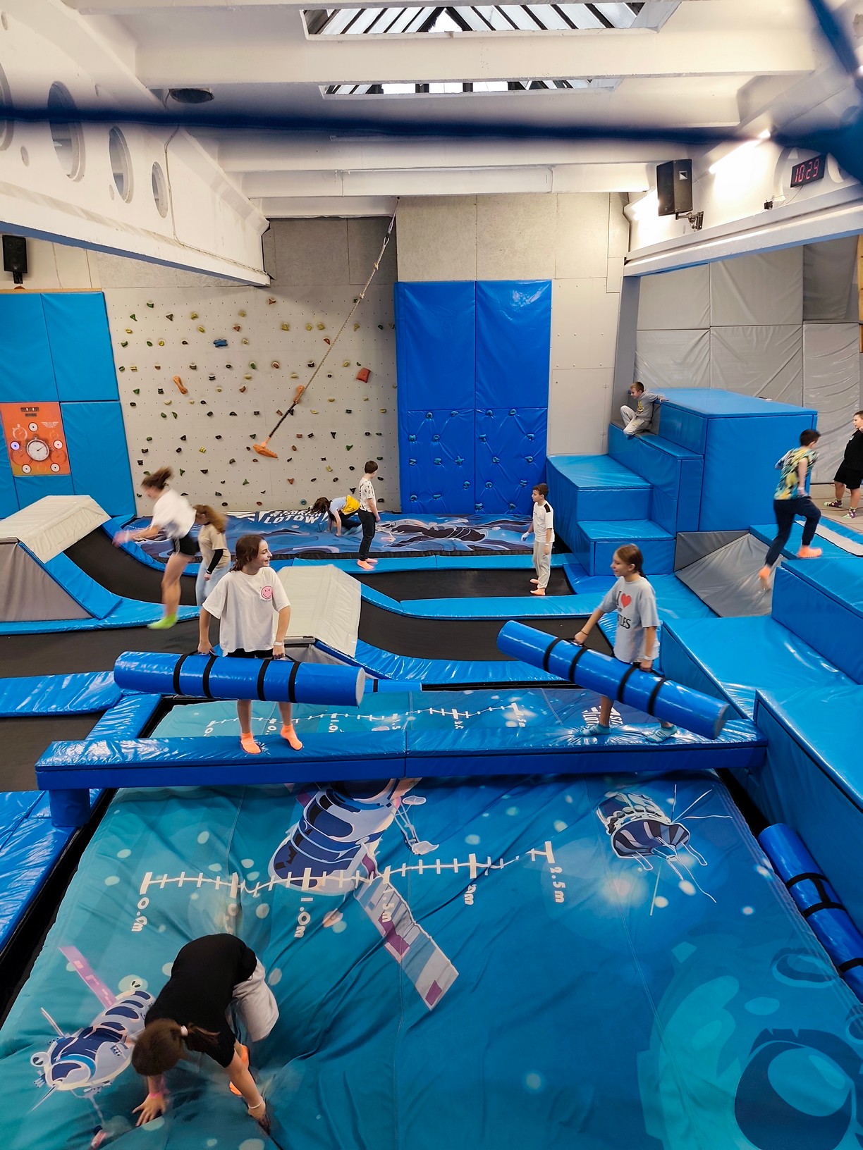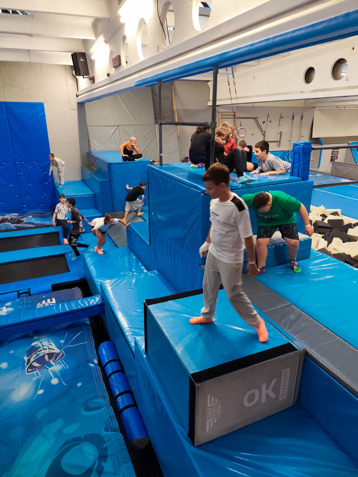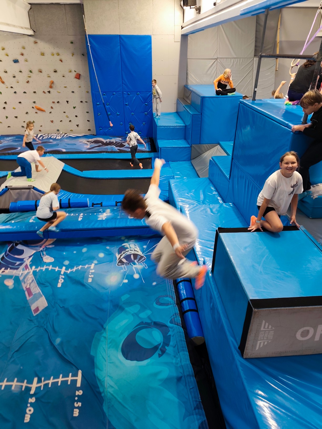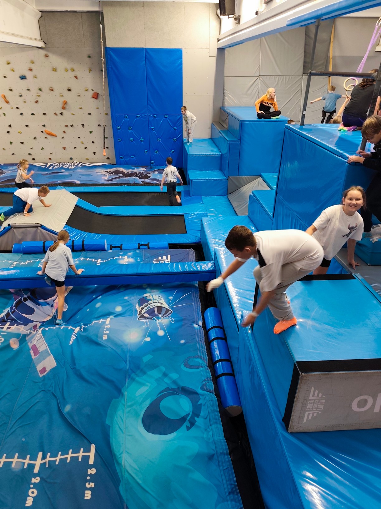 Był to czas na solidną dawkę ruchu, zabawy i pozytywnej rywalizacji! Uczniowie mieli okazję sprawdzić swoją sprawność i odwagę, wspólnie pokonując tory przeszkód, skacząc na trampolinach i śmiejąc się do łez.